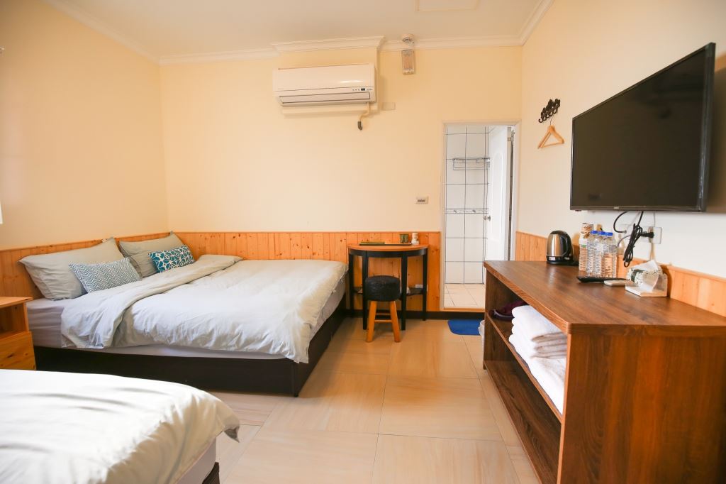 高級舒適床被組、有線頻道39吋液晶電視、日立分離式冷氣、WIFI訊號、吹風機、熱水壺、獨立衛浴、毛巾...等。
